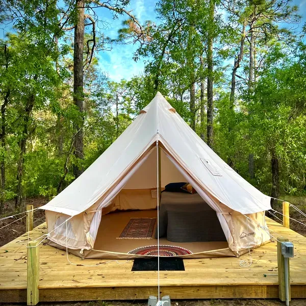 family, or solo adventurers seeking a tranquil getaway. Solar-powered fans and lights keep the